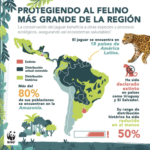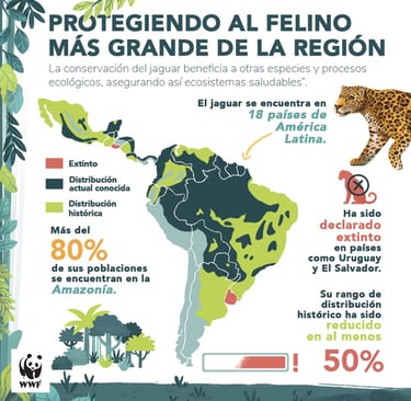 El jaguar (Panthera onca), EL Felino mas grande de América y segundo en el mundo despues del tigre, es un símbolo de poder, equilibrio del ecosistema y deidad en la cosmovisión de muchas culturas originarias de América, ha sido desplazado de su hábitat natural y hoy enfrenta graves amenazas con el conflicto con los seres humanos, la caza y el tráfico de sus partes.